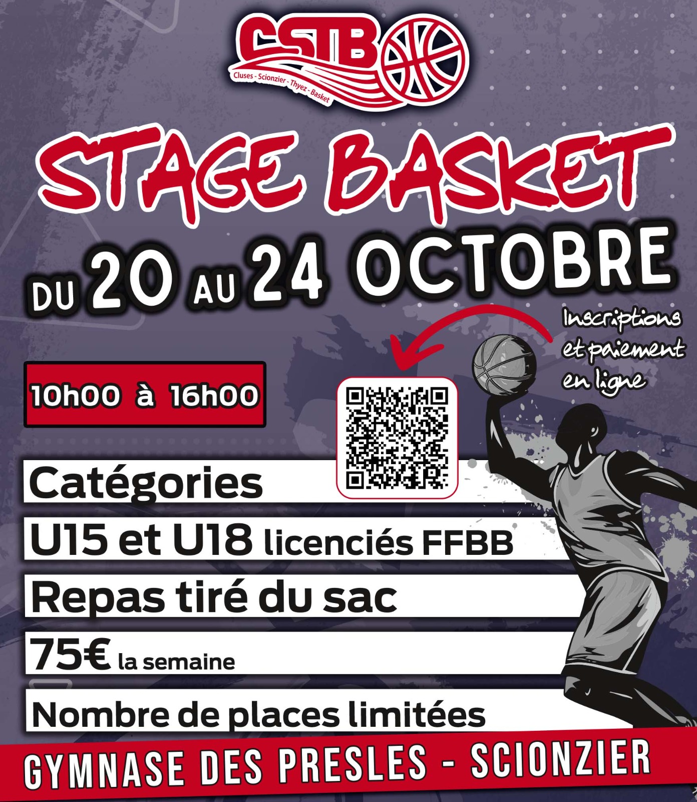 Lors de la première semaine des vacances de la Toussaint, le CSTB organise un stage de basket pour les U13, U15 et U18.